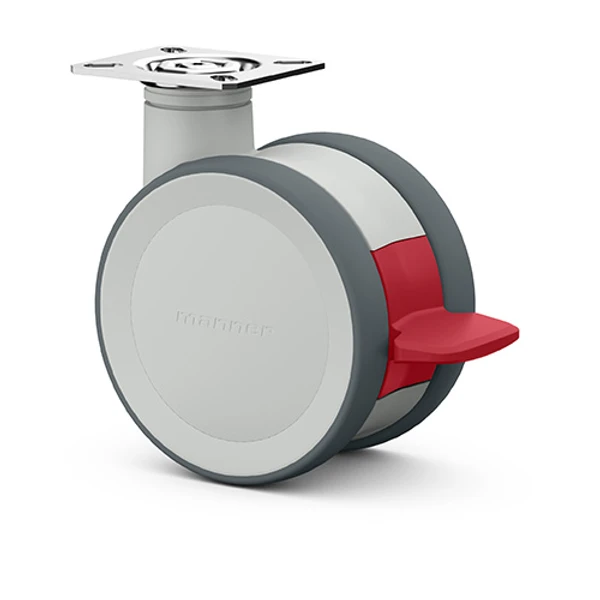 TWIST Tvillinghjul. Tidlös design, ljusgrått. Ø125mm. Polyuretanbana, Broms.
