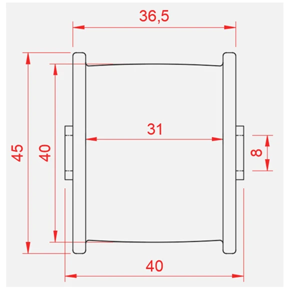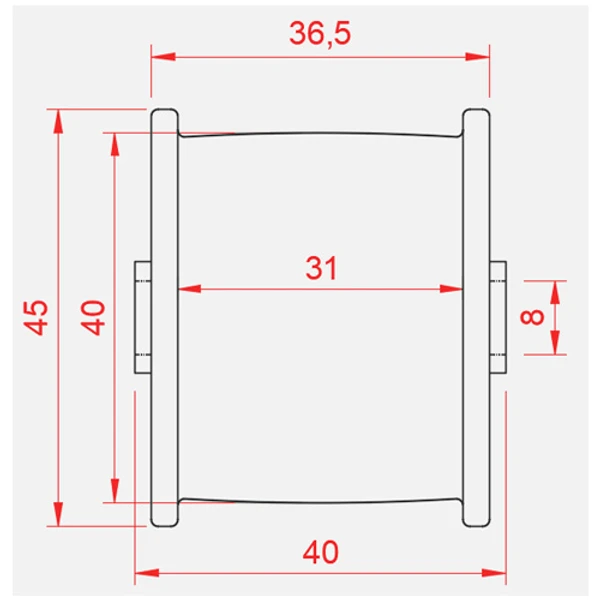 Tryckhjul för flatrem. Ø45/40×36,5 8/40